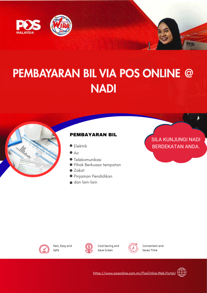 Dalam era digital yang semakin berkembang pesat, urusan harian seperti pembayaran bil kini boleh dilakukan dengan lebih mudah dan pantas. Menyedari keperluan masyarakat untuk kaedah pembayaran yang lebih efisien, Pos Malaysia kini menyediakan perkhidmatan pembayaran bil secara dalam talian melalui POS Online @ NADI.